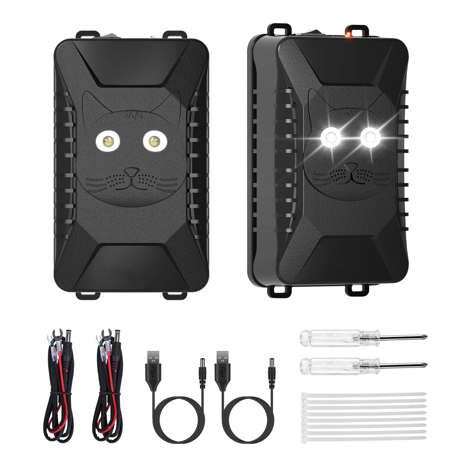 • *Effective Under Hood Rodent Control*:Come with 2 pack,our rodent chaser can emit ultrasound at frequency 18KHz-36KHz. Also emit bright flashes to keep rodents or wildcats away from your properties or vehicles.