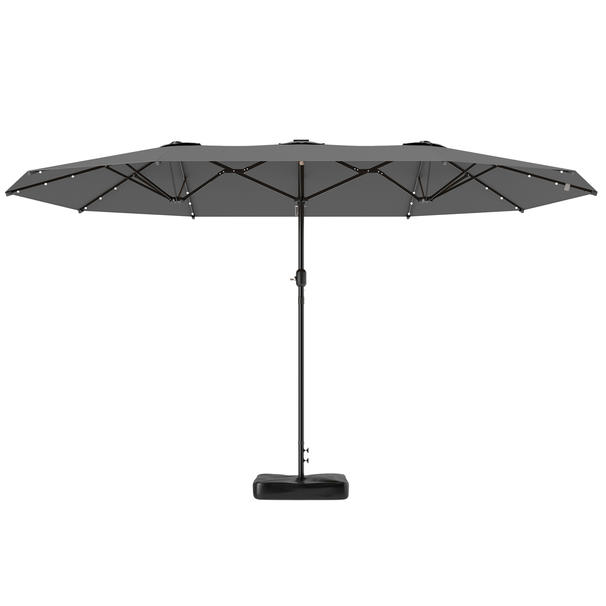 Garden Parasol 14.4ft Double-Sided Sun Umbrella With Base, Patio Parasol With LED Solar Lights, Gray