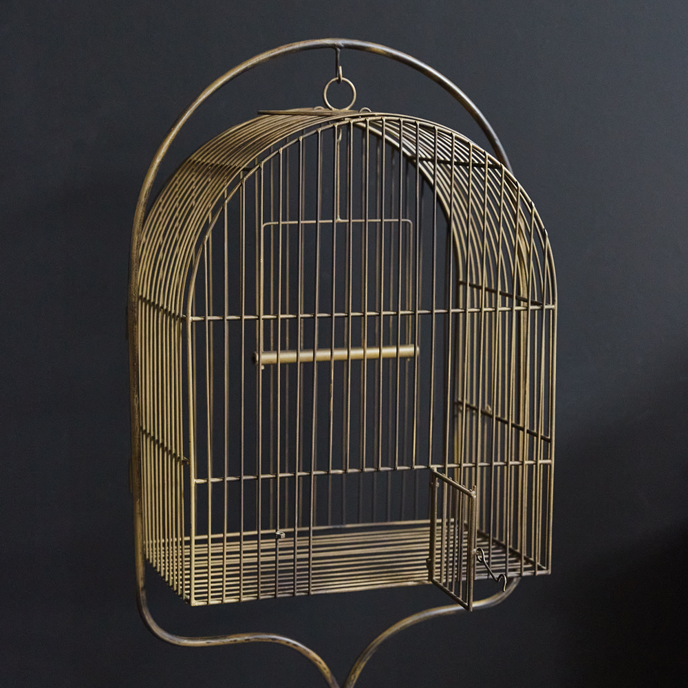 Home > Antique Brass Birdcage with Stand