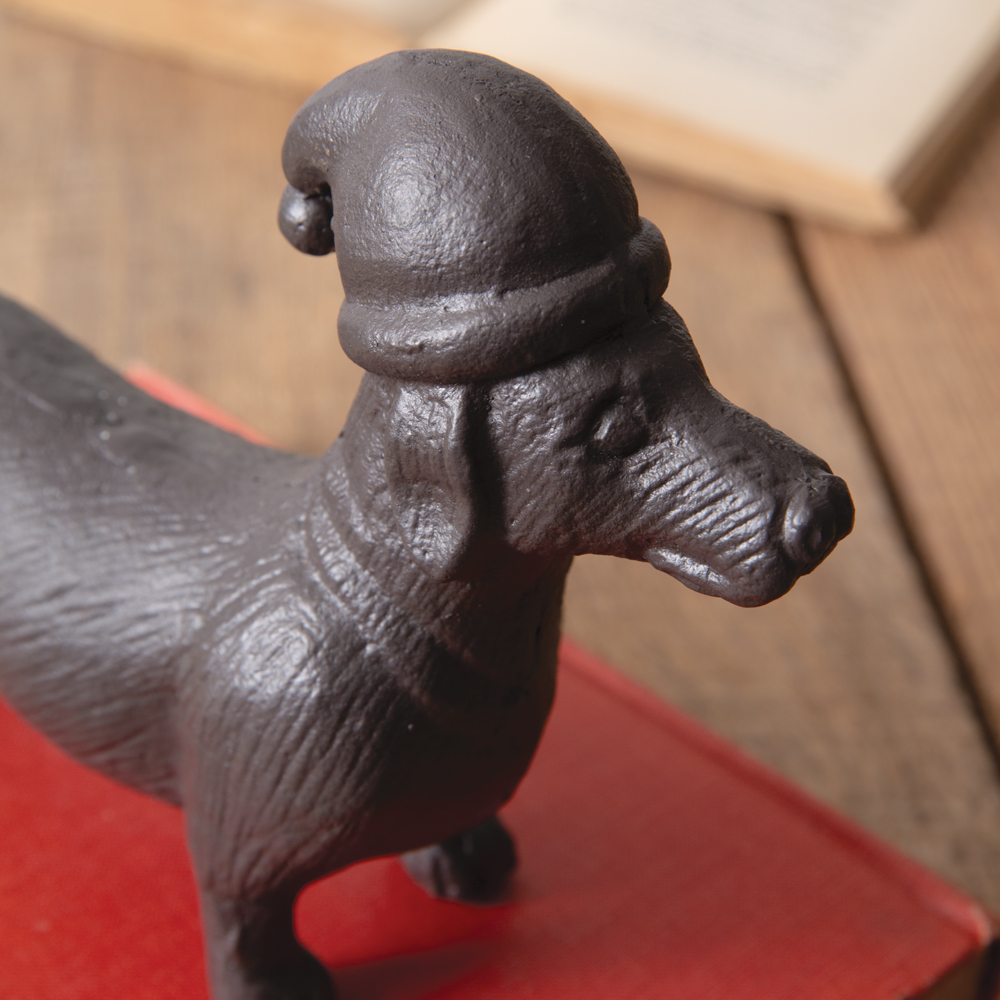 This adorable piece captures the mischievous and playful spirit of the beloved dachshund breed. Made from solid cast iron, you will be enjoying this figurine for years to come.