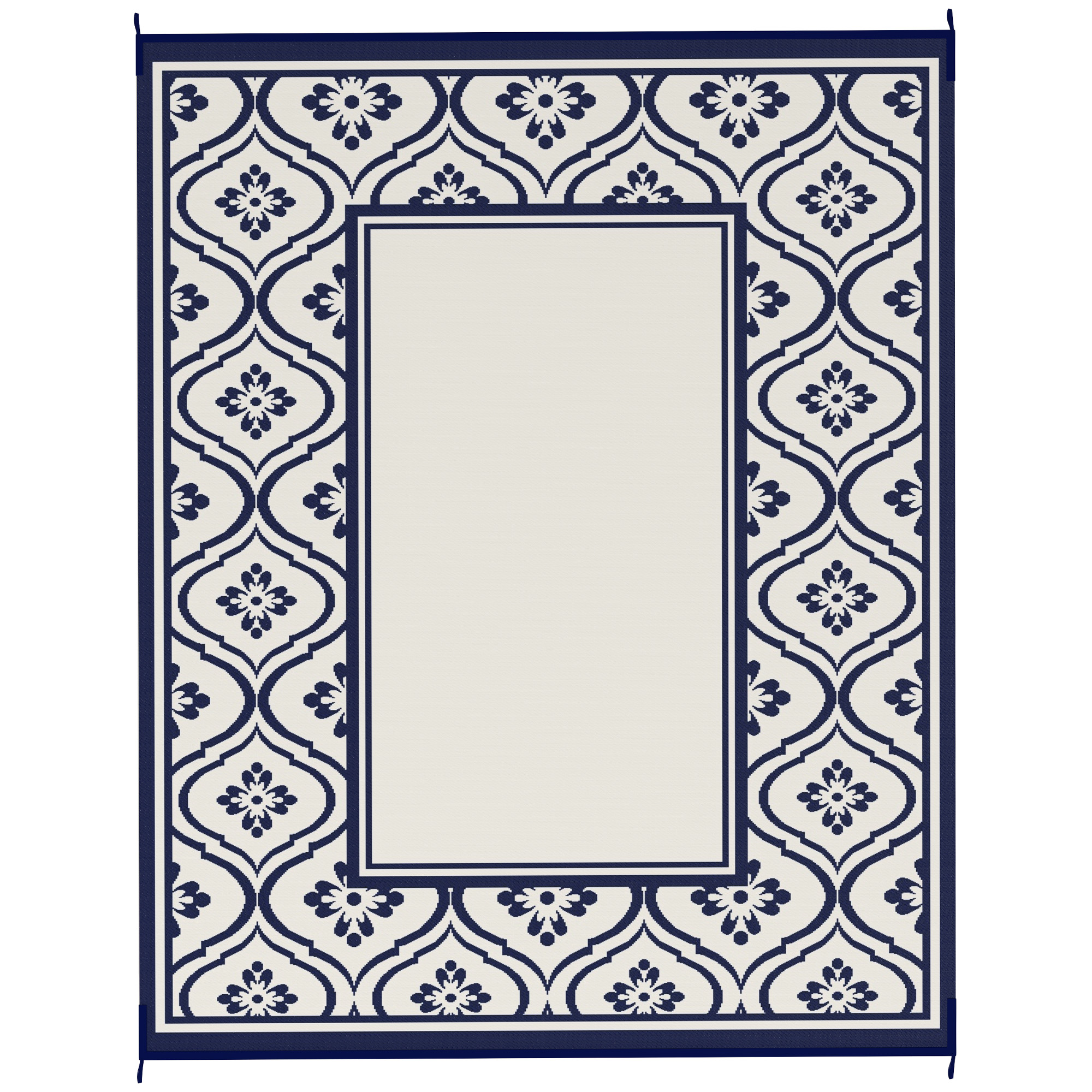 Reversible Outdoor Rug, Waterproof Plastic Straw With Carry Bag, 8 X 10, Blue & White Gourd Border