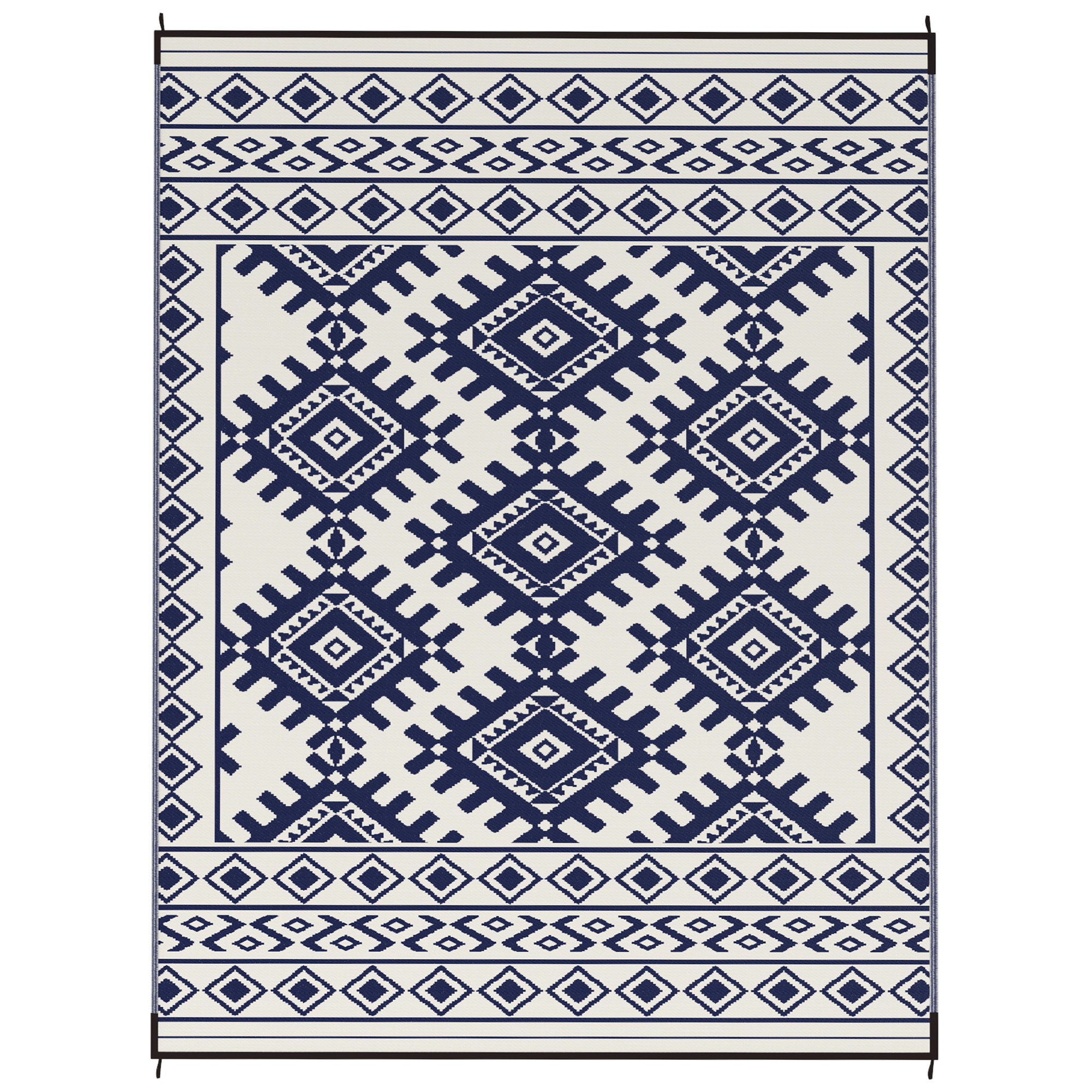 Home > Reversible Outdoor Rug, Waterproof Plastic Straw With Carry Bag, 9 X 12, Blue White Rhombus Border